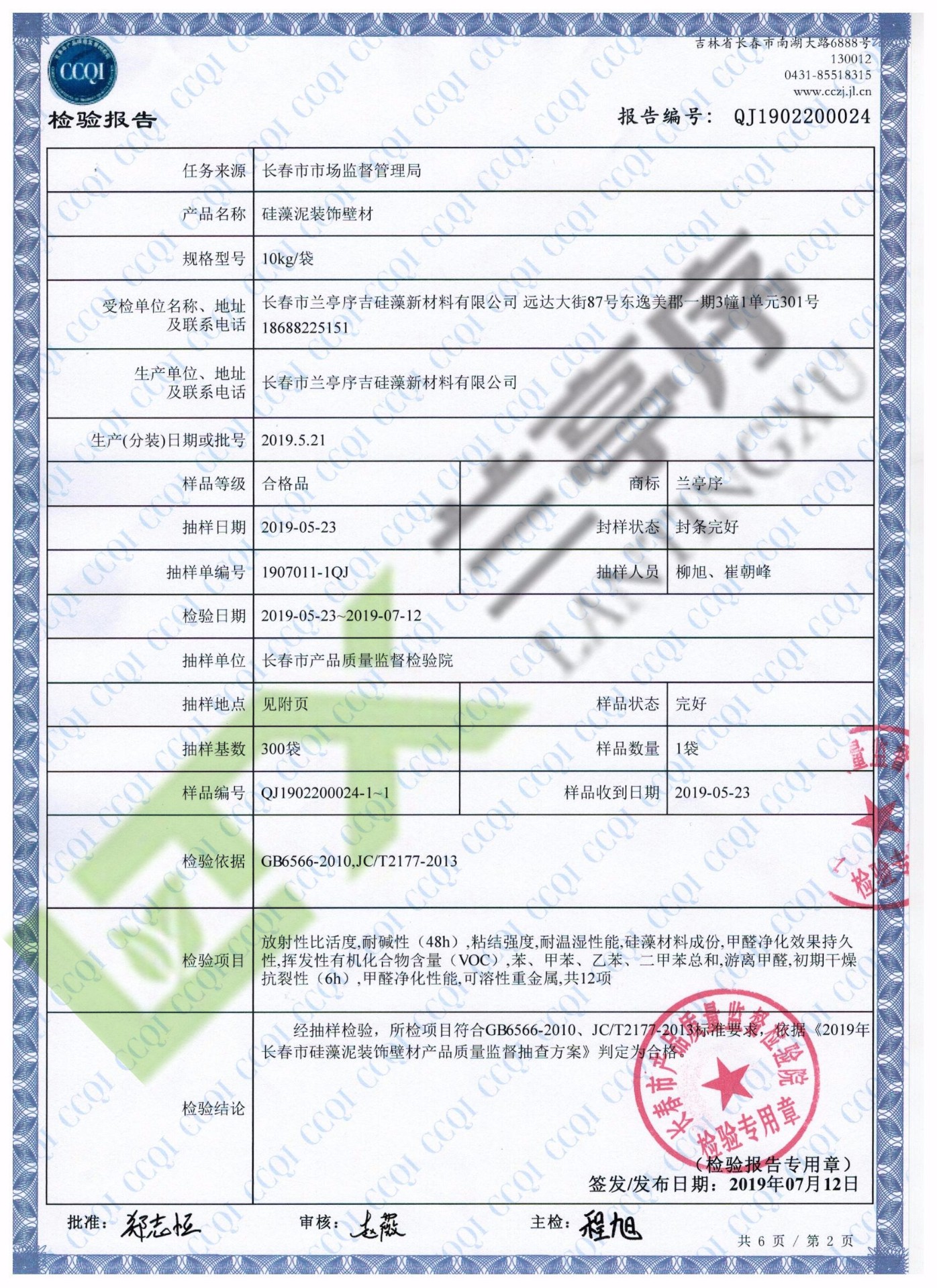 2019蘭亭序硅藻泥抽查檢測報(bào)告