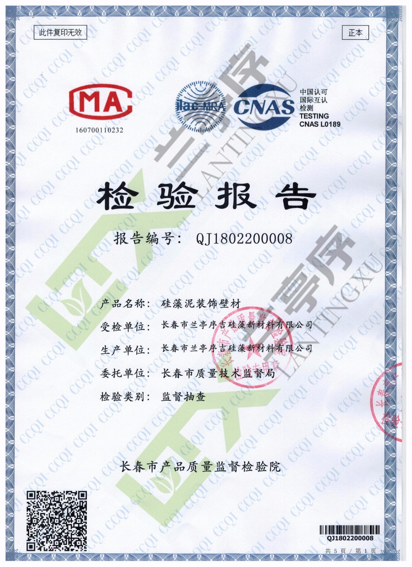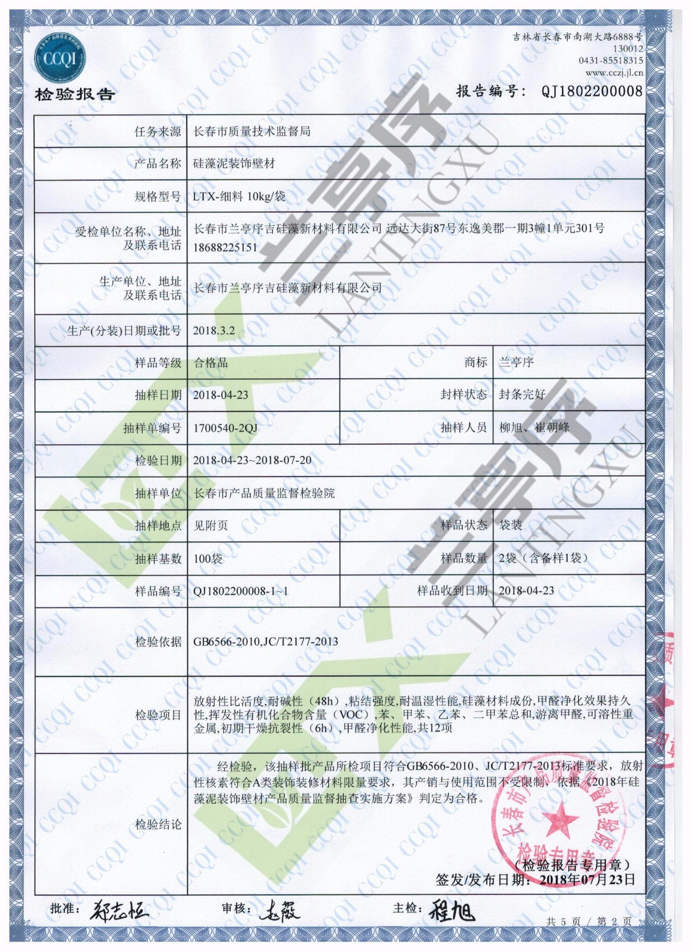 2018蘭亭序藝術(shù)壁材檢測報告